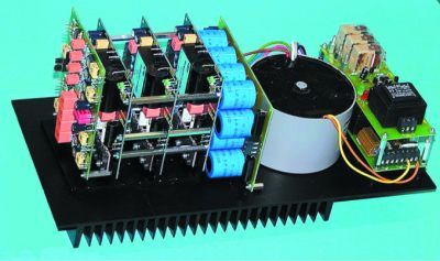 Darstellung der vier übereinander gestapelten Thel-Platinen. Die drei IQ-Amp-Elemente besitzen das gleiche Maß wie die Aktivweiche SAW 30, wodurch sie so Platz sparend montiert werden können.