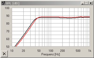unteren Grenzfrequenz von 42 bis 38 Hz. Die Epfindlichkeit im Tieftonbereich beträgt dementsprechend nicht 85 dB, sondern 88 dB.