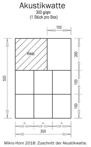 breiten) Hornverlauf, womit der Bereich vom Anfang bis zum ersten Knick des Hornverlaufs komplett gefüllt ist. 35 g Watte für die Absorberkammer, das sind z. B. 6 Stücke von je ca. 13x15 cm. Diese werden