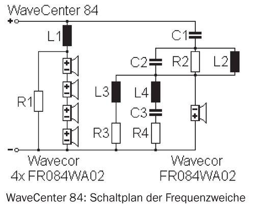 WaveCenter 84 überhaupt nicht. Abgebildet ist vielmehr der Frequenzgang des mittleren Breitbänders, der auch den Hochtonbereich übernimmt.