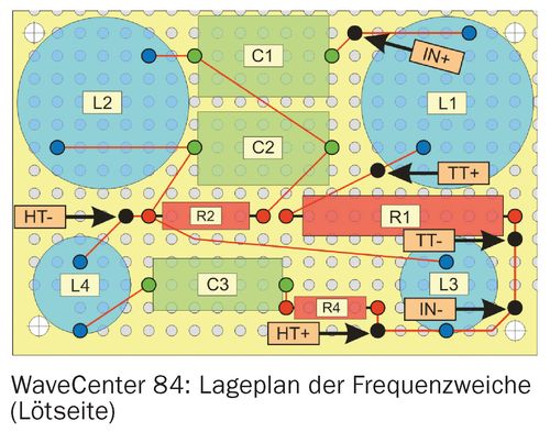 angeordnete Mittelhochtöner im WaveCenter gegenphasig gepolt werden. Dies ist sowohl im Schalt- auch als Lageplan in HOBBY HiFi 4/2018 mocjt berücksichtigt. Hier zeigen wir beide Pläne mit Korrektur: