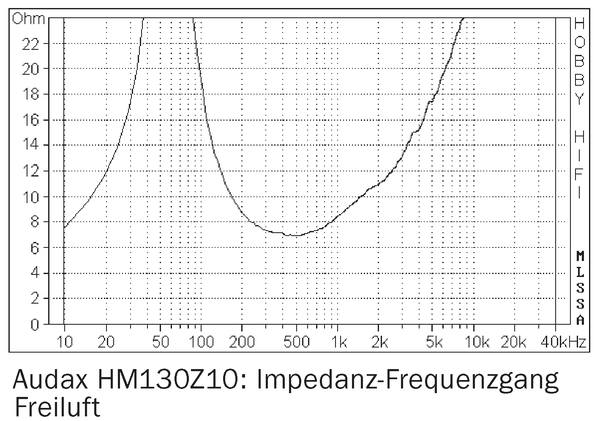 vorgestellt, und der hat eine erheblich höhere Schwingspulen-Induktivität. Hier ist das verloren gegangene Impedanz-Diagramm: